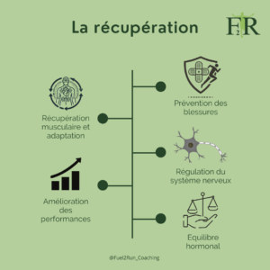 4. Régulation du système nerveux : l’entraînement intense fatigue non seulement les muscles mais aussi le système nerveux. Une bonne récupération permet au système nerveux central de se régénérer, ce qui te permet de mieux gérer la fatigue mentale et physique.