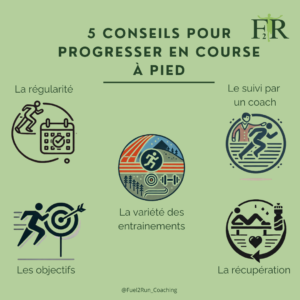 Pour progresser, alterne entre différents types d’entraînements. Inclut des sorties longues pour améliorer ton endurance, des séances de fractionné pour développer ta vitesse, et des sorties en côte pour renforcer tes muscles. Varier les intensités et les distances stimule ton corps et évite la stagnation.