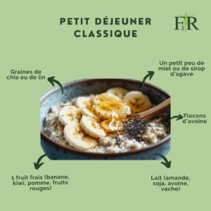 Pour un petit déjeuner équilibré, il est important d’inclure différents groupes d’aliments afin de bien commencer la journée et d’apporter à ton corps l’énergie nécessaire. Voici quelques éléments essentiels à privilégier :