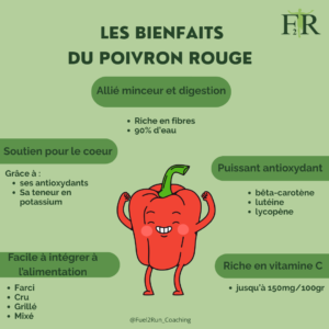 Avec seulement 30 calories pour 100 g, le poivron rouge est un aliment idéal pour celles et ceux qui souhaitent contrôler leur poids. Il est également :